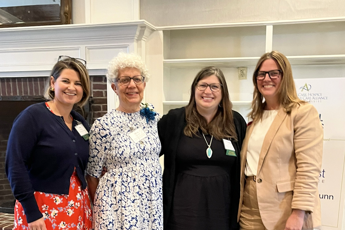 from left to right Amy Moore, Board President of the Home Care, Hospice & Palliative Care Alliance of New Hampshire; Sandy Ruka, Executive Director of VNHCH, Ashlee Chaine, Community Outreach Coordinator for VNHCH; and Keliane Totten, Chief Executive Officer of the Alliance.